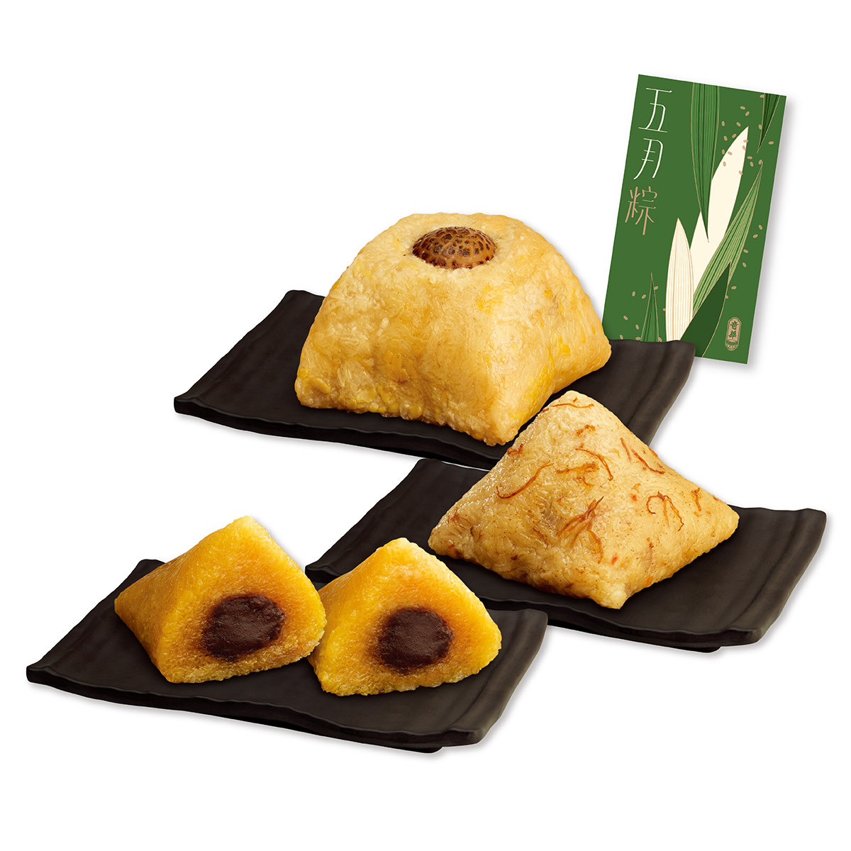 「金腿咸肉粽」严选特级金华火腿、优质的五花腩等特级食材精心制作,展现了传统的家乡风味。粽味浓郁迷人,令人嚐后齿颊留香。