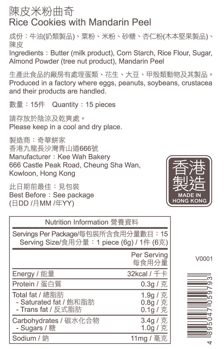 陈皮米粉曲奇以日本米粉取代传统面粉,再加入美国杏仁粉,打造出口感轻盈、松化不腻的米粉曲奇。严选优质新会陈皮,其独特的柑橘清香与醇厚回甘在口中慢慢散开,与米粉曲奇本身的松化口感完美融合,味道层次丰富,清新而不甜腻。