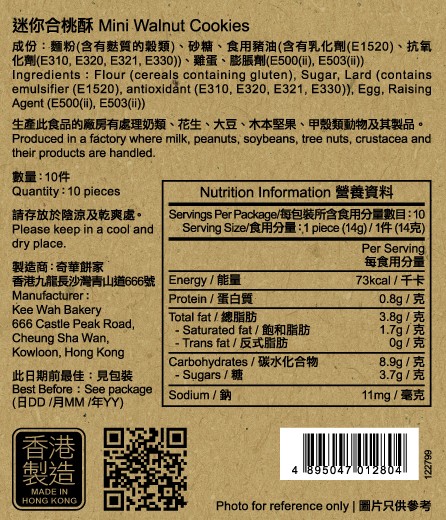 | Product content | Mini Walnut Cookies (10pcs) |