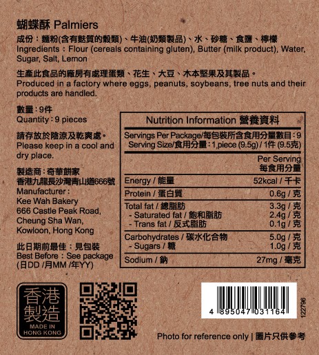 | Product content | Palmiers (9pcs) |