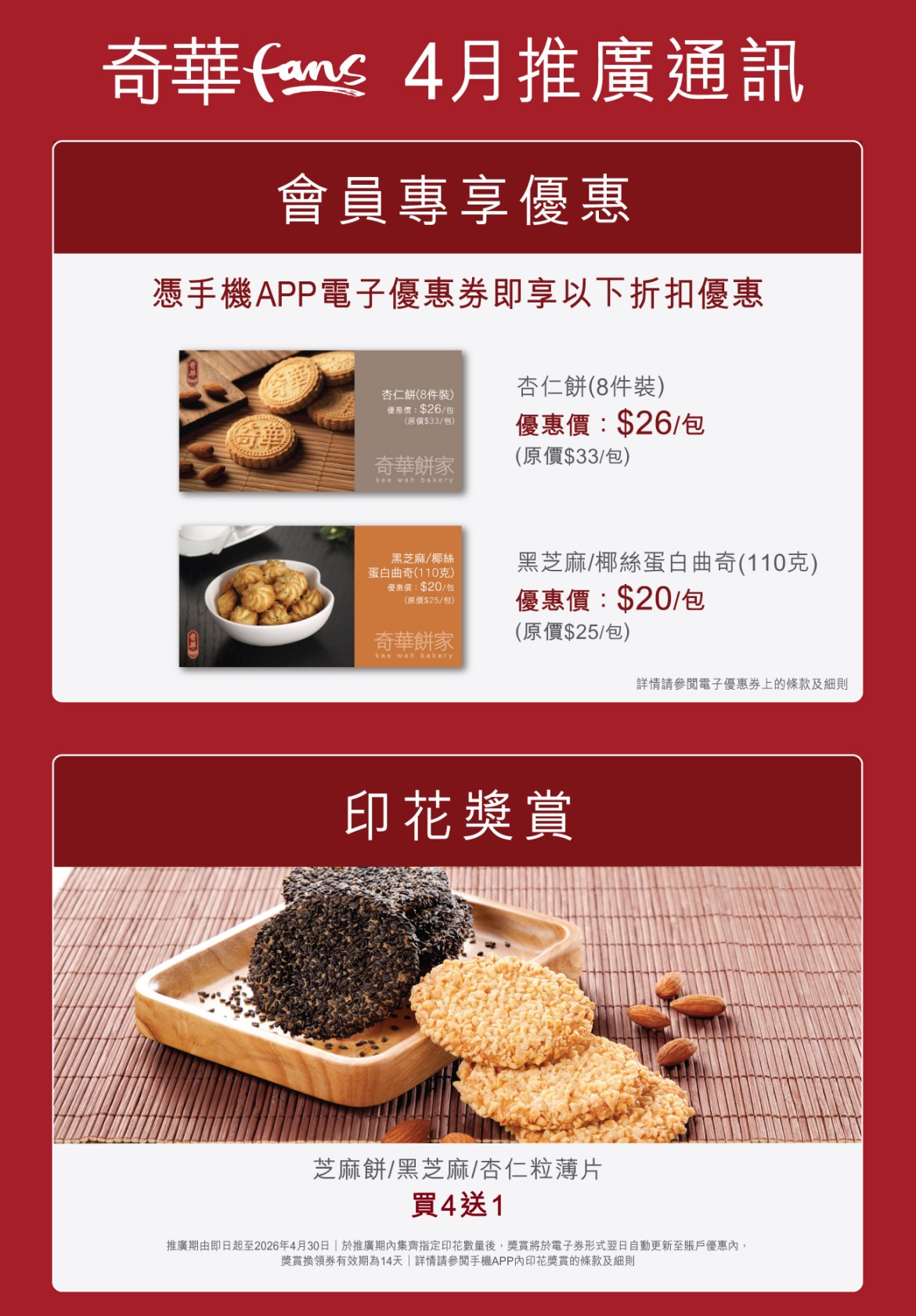 Teams and conditions apply. Kee Wah Bakery Limited reseves the right to make the final decision in case of any dispute.