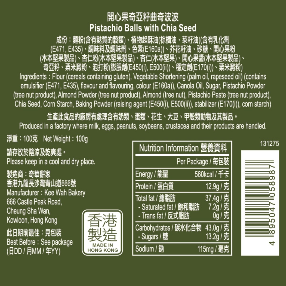| Product content | Pistachio Balls with Chia Seed (100g) |