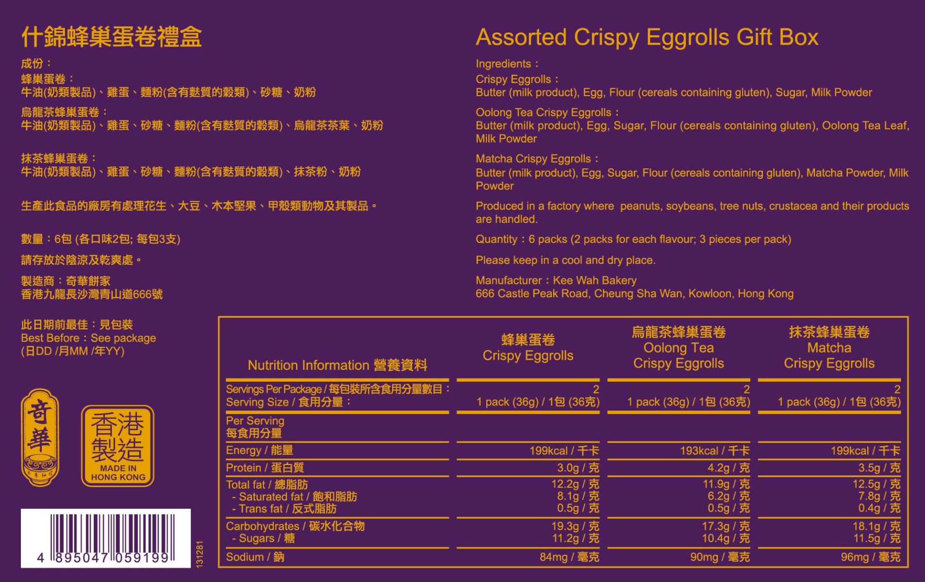 以優質麵粉、雞蛋及牛油等材料製造而成,擁有濃濃蛋香及鬆脆口感的蛋卷絕對令人回味無窮,食過不停!