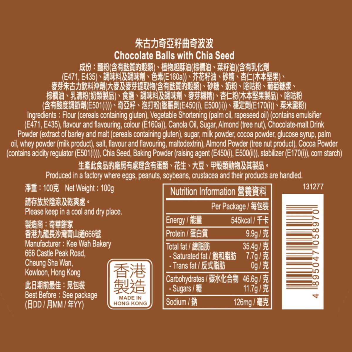 可可粉獨有的醇厚微澀香氣,與溫潤的杏仁完美結合,香濃甜美。以優質奇亞籽和幼滑杏仁粉及美國杏仁精心製作,造就其外面入口即化、內裏鬆化酥脆的獨特口感。