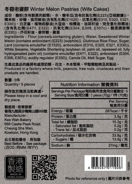 香港都會系列冬蓉老婆餅禮盒– 5件裝