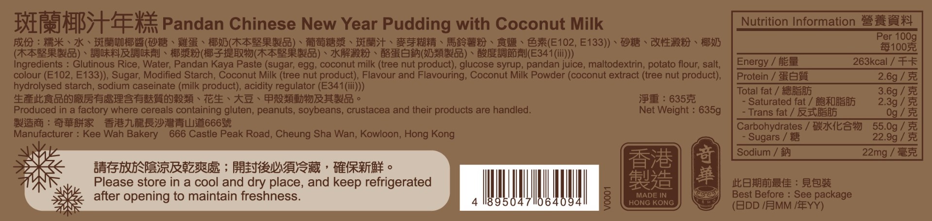 斑蘭椰汁年糕 635克