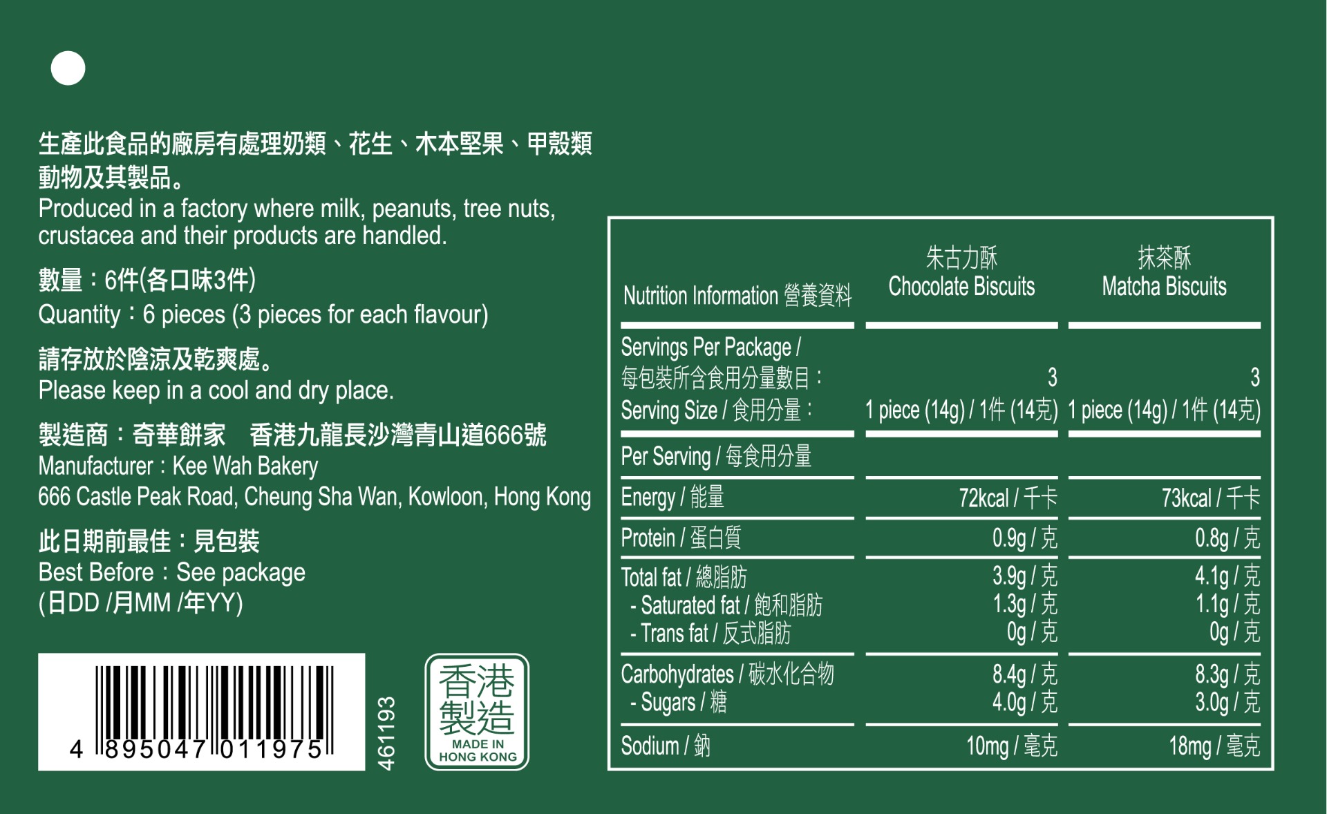 1. 抹茶酥 (3件) 2. 朱古力酥 (3件) |
